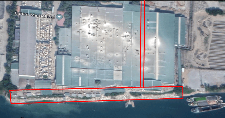 গুগুল ম্যাপে ধারণ করা আবুল খায়ের গ্রুপ এর নদী দখলের চিত্র।