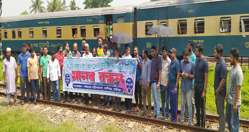 শুক্রবার (১৭ মে) সকালে আড়িখোলা রেলওয়ে স্টেশনে এ মানববন্ধন করেন স্থানীয় যাত্রীরা।