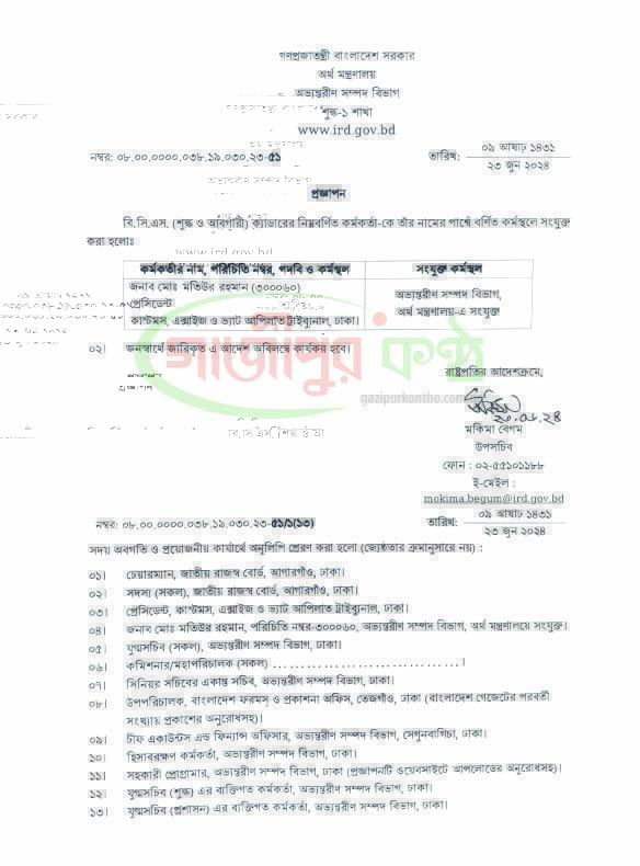গাজীপুর কণ্ঠ ডেস্ক : ছাগলকাণ্ডে জাতীয় রাজস্ব বোর্ড (এনবিআর) কর্মকর্তা মতিউর রহমানকে ওএসডি করা হয়েছে।