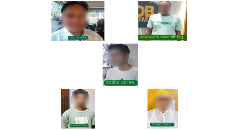 ডিসি মুহাম্মদ তালেবুর রহমান সংবাদ মাধ্যমকে জানায়, বুধবার ভোরে রাজধানীর ভাটারা থানাধীন বসুন্ধরা আবাসিক এলাকার জি-ব্লক থেকে এস এম রবীন হোসেনকে গ্রেপ্তার করা হয়। এর আগে মঙ্গলবার রাতে তেজগাঁওয়ের নাবিস্কো এলাকায় অভিযান চালিয়ে ইসতিয়াক মিলনকে, কচুয়া থেকে ইসাহাক সিকদারকে, নিকুঞ্জ–২ এলাকা থেকে ইব্রাহিম আহমেদ রিপনকে এবং পৃথক অভিযানে রায়হান রহমতুল্লাহ ওরফে রিমুকে গ্রেপ্তার করা হয়।
