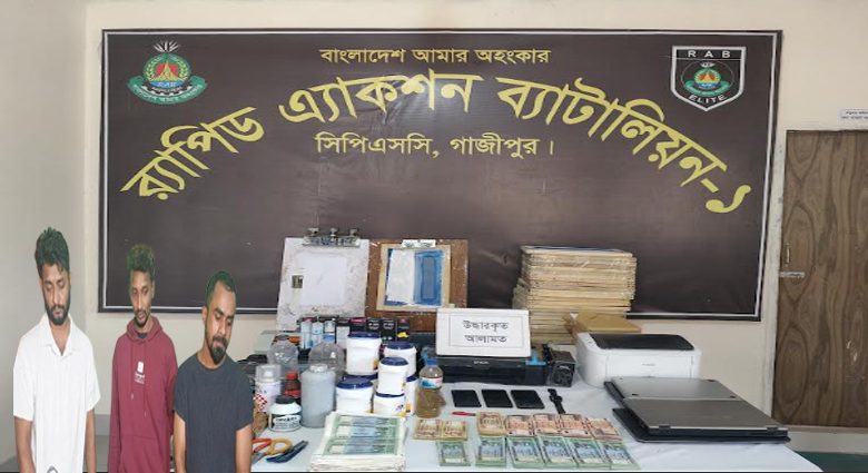 র্যাব কর্মকর্তারা জানান, গোপন সংবাদের ভিত্তিতে তারা জানতে পারেন, টঙ্গী পূর্ব থানার দত্তপাড়া এলাকার খোকন ভিলার পঞ্চম তলায় জাল টাকা তৈরির একটি কারখানা স্থাপন করে অবৈধভাবে জাল নোট প্রস্তুত ও বিক্রি করা হচ্ছিল। এরপর রাত সাড়ে ১১টার দিকে সেখানে অভিযান চালানো হয়।